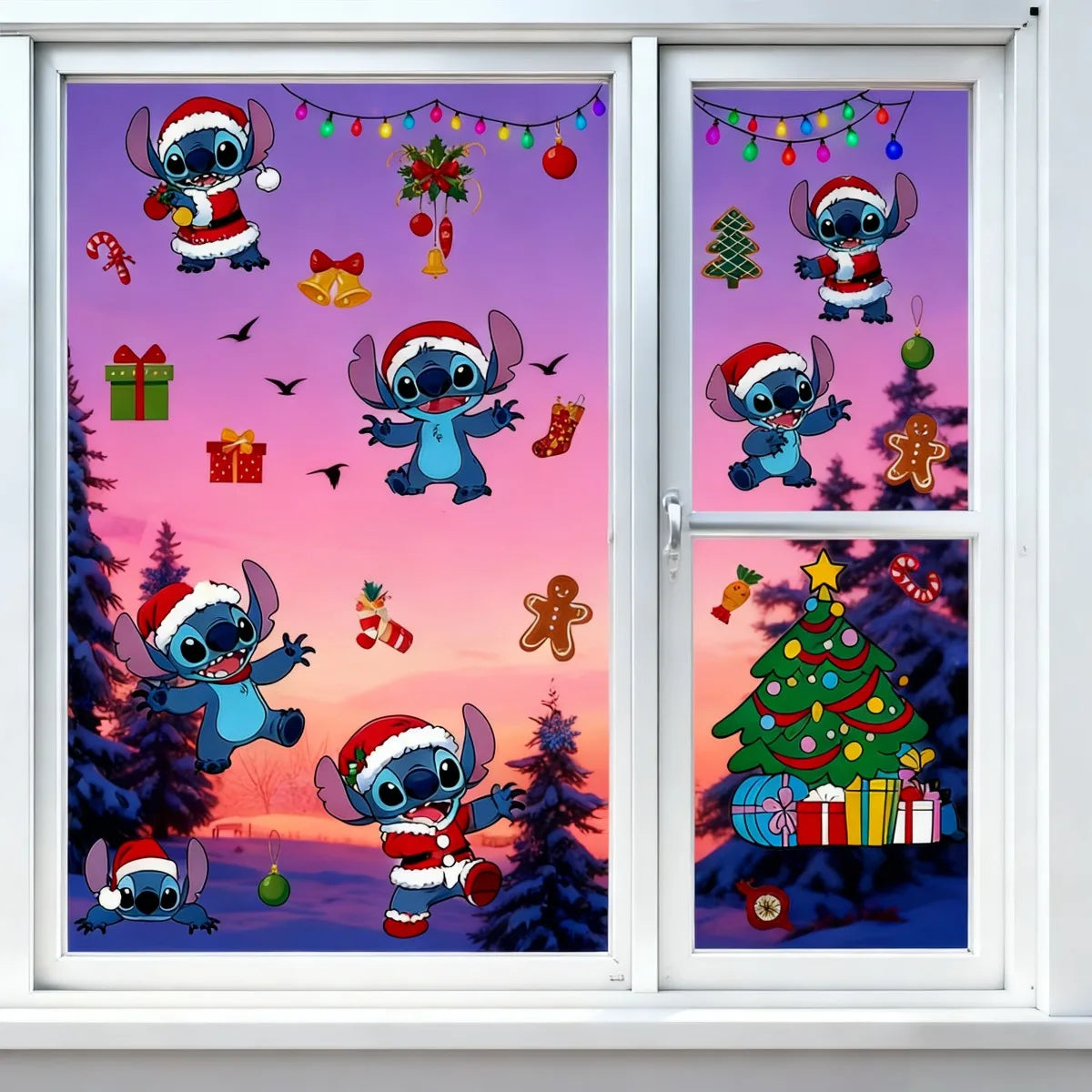 🎄✨ Stickers Muraux de Noël Kawaii – Style Stitch (46 pièces / 6 planches) 💙